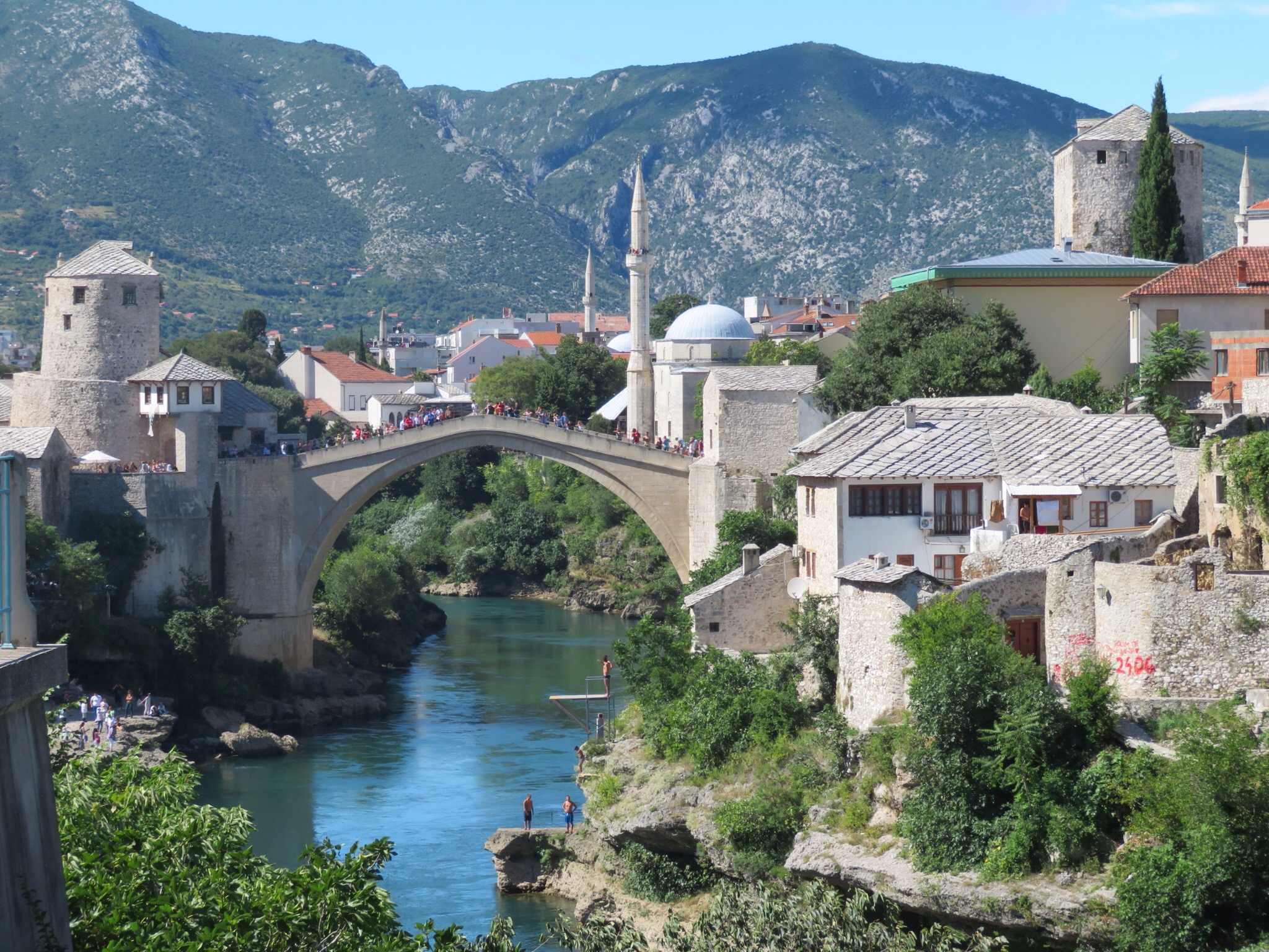 There is a beautiful old bridge in town, Stari Most, which locals jump off of every day, and the bold tourist may even do so for a small fee. Red Bull holds a competition there every year.